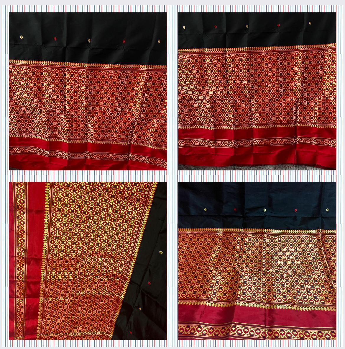 Dhara Pure Silk showcases a striking Black & Maroon contrast, thoughtfully woven to highlight classic craftsmanship and refined tradition. The deep tones create a harmonious balance, lending the silk a rich visual depth and enduring appeal.
