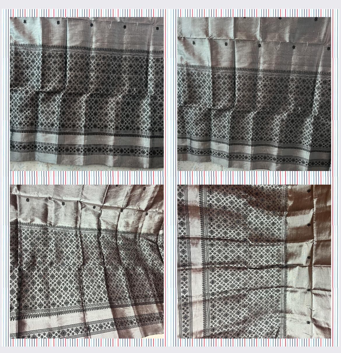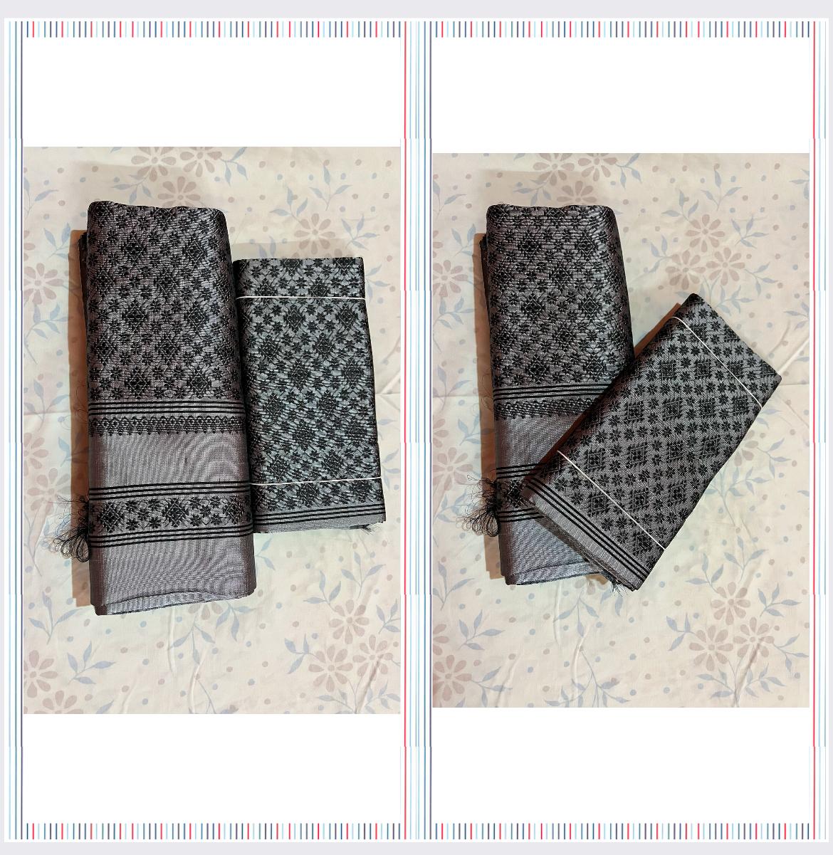 The sophisticated Steel Grey tone lends understated elegance, making this dhara an ideal choice for traditional functions, formal gatherings, and festive occasions. Its graceful drape, refined craftsmanship, and harmonious design reflect timeless tradition while ensuring comfort and luxury.